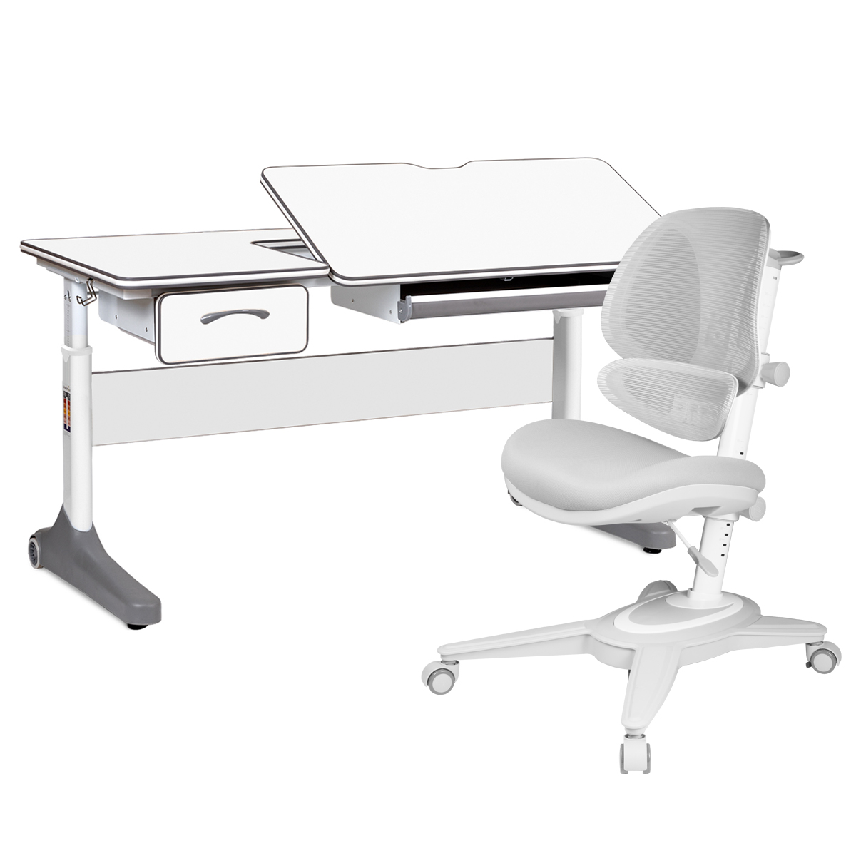 Раздельная конфигурация поверхности стола: наклонная часть регулируется под углом до 60 градусов, что позволит вам выбрать максимально удобный угол наклона для письма, чтения и рисования; фиксированная часть даст дополнительное пространство для хранения книг и других необходимых предметов. Ящик-органайзер разделен на отсеки, для удобного хранения канцелярских товаров. В боковую полку удобно сложить более крупные необходимые для учебы предметы.