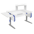 Парта Дэми СУТ-25-02Д1 120см раздельная с двумя приставками и надстройкой белый/синий/серый каркас