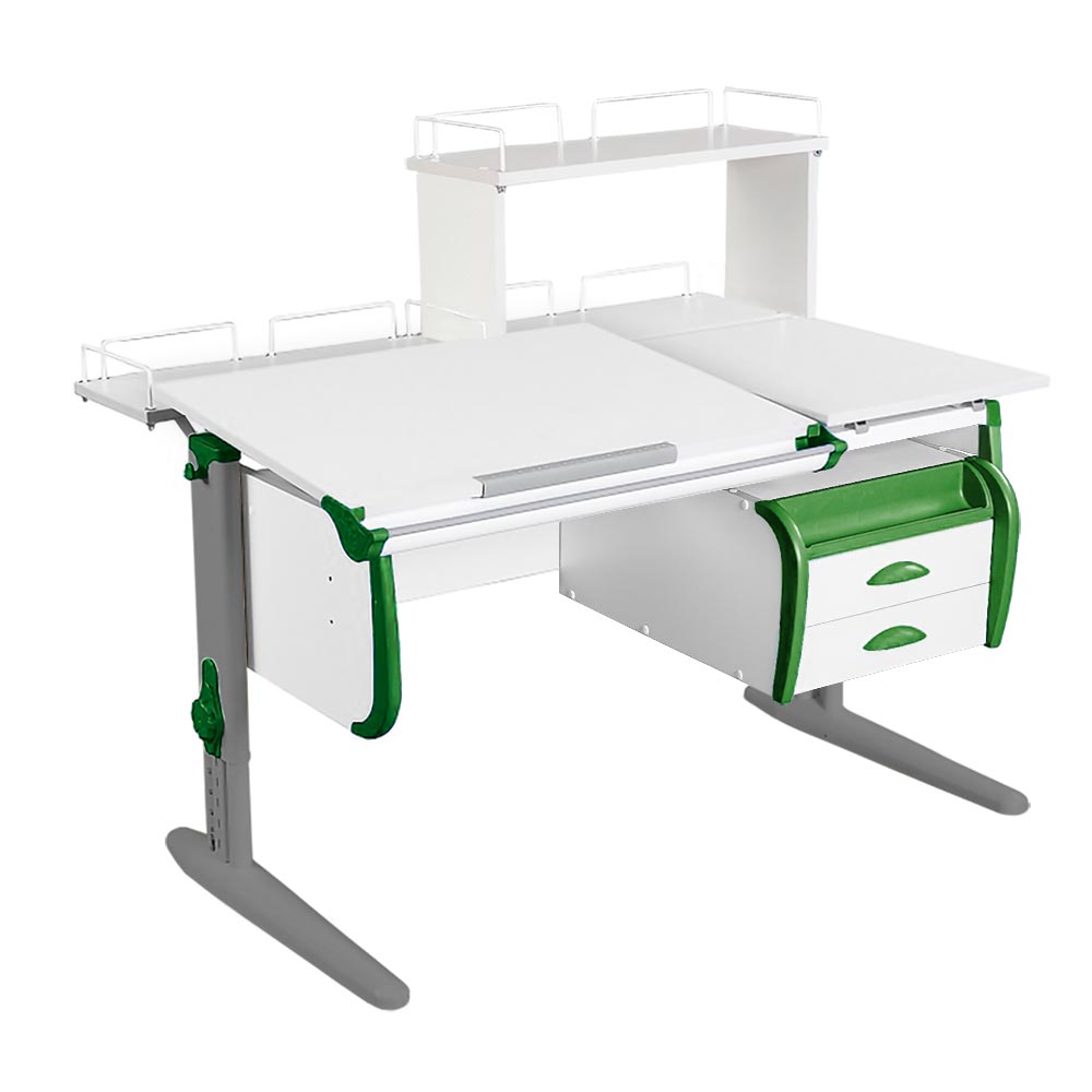 Парта Дэми СУТ-25-04Д1 120 см раздельная с тумбой с приставкой и надстройкой белый/зеленый/серый с тумбой ТСН-01-01
