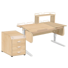 Парта Дэми СУТ-25-04Д1 120 см раздельная с тумбой с приставкой и надстройкой клен/бежевый/белый c тумбой ТУВ.06