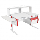 Парта Дэми СУТ-25-05Д2 120 см раздельная с тумбой с приставкой и надстройками белый/красный/белый каркас